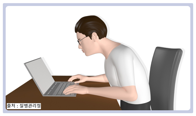 올바른 자세를 유지하는 것이 중요합니다. 컴퓨터 작업 시 모니터는 눈높이에 맞추고, 의자는 등받이가 있는 것을 사용하는 것이 좋습니다. 또한, 스마트폰을 사용할 때는 눈높이에 맞춰 사용하는 것이 바람직합니다.