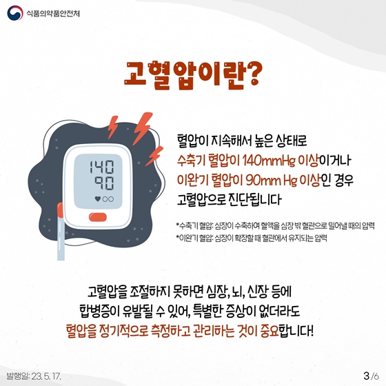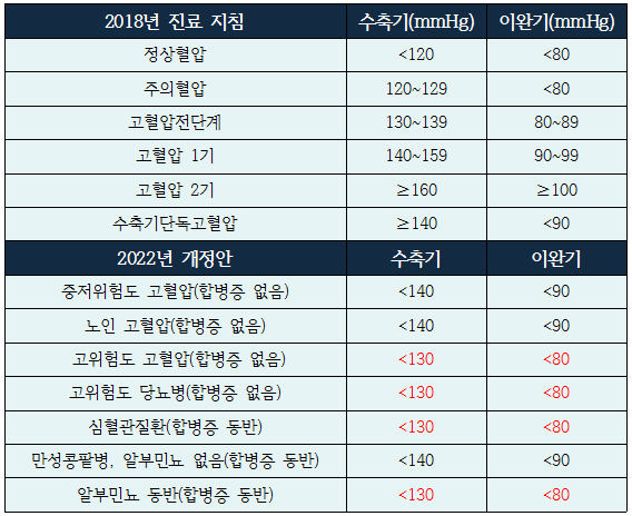 - 고혈압: 140/90mmHg 이상