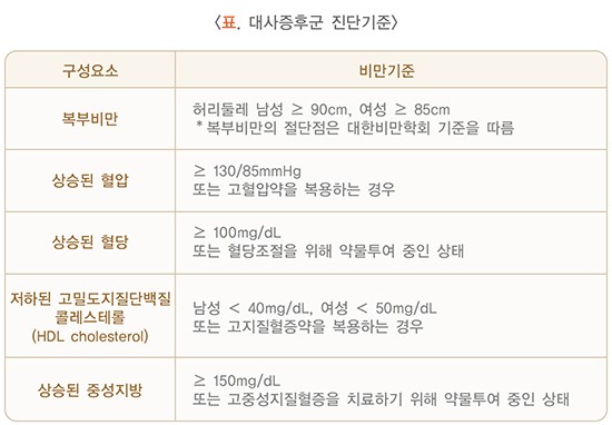 - 복부 비만: 허리 둘레가 남성 90cm 이상, 여성 85cm 이상