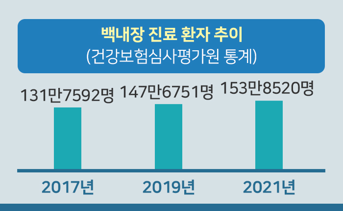 한국은 급속한 고령화로 인해 백내장 환자가 증가하고 있습니다. 2021년 국민건강보험공단 자료에 따르면, 백내장 수술을 받은 환자 수가 매년 증가하고 있으며, 특히 60대 이상의 연령층에서 높은 비율을 차지하고 있습니다.