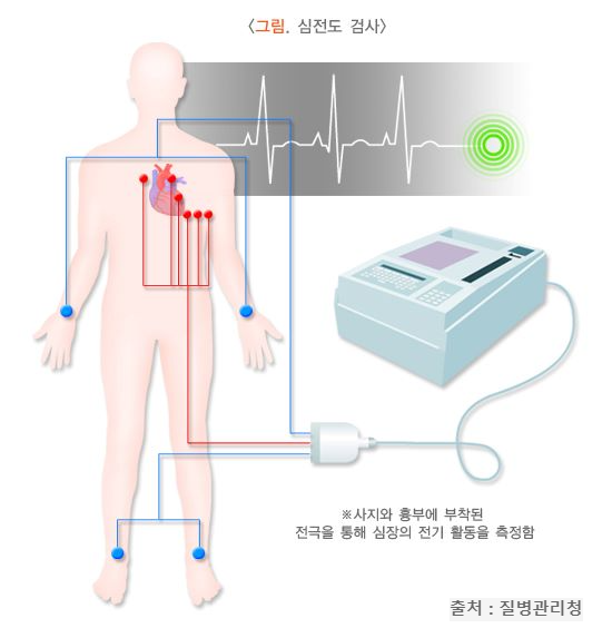 ˚ 심장의 전기적 활동을 기록하여 부정맥을 진단합니다.