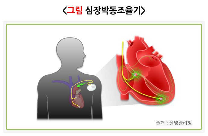 ˚ 인공 심박동기 또는 제세동기를 삽입해 심장 리듬을 조절합니다.