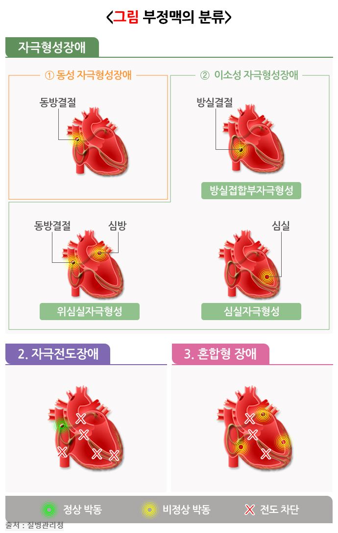 부정맥은 크게 네 가지 유형으로 나눌 수 있습니다.