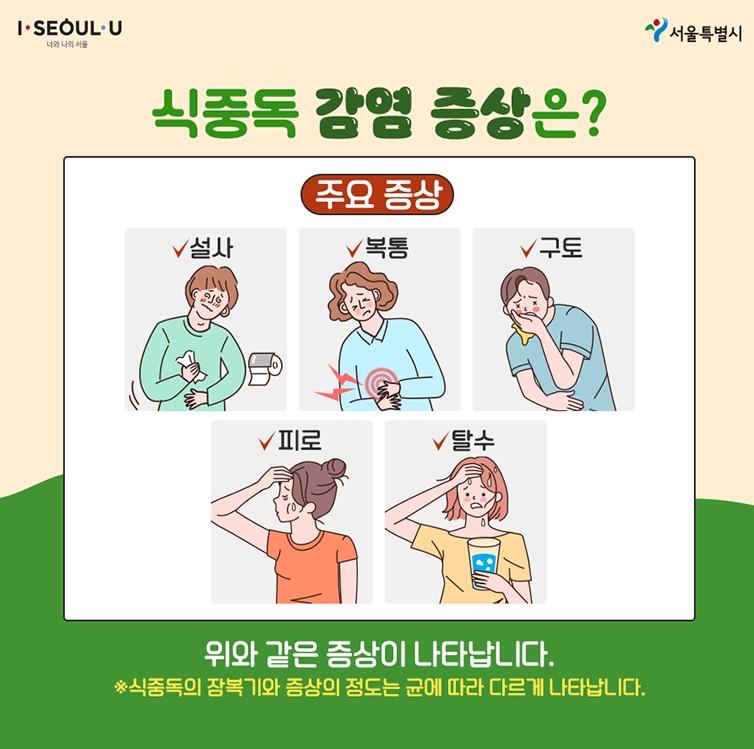 증상은 오염된 음식을 섭취한 후 몇 시간에서 며칠 이내에 나타날 수 있으며, 증상이 심할 경우 병원을 방문해야 합니다.