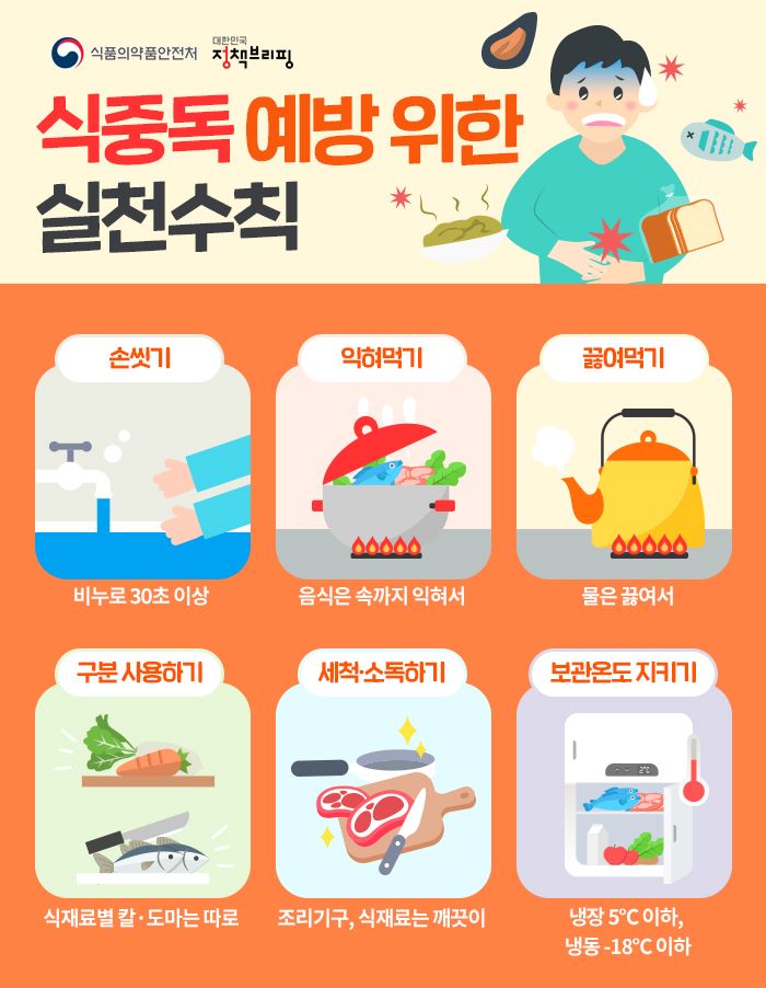 식중독을 예방하기 위해 다음의 방법을 철저히 지켜야 합니다