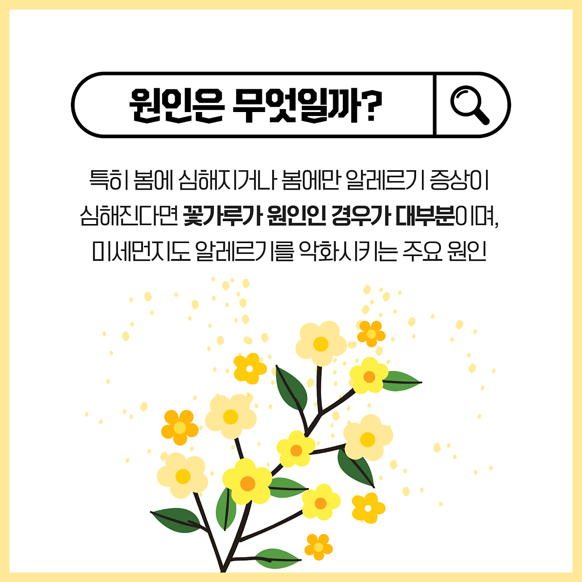 - 외출 시 주의: 꽃가루가 많이 날리는 계절에는 외출을 자제하고, 마스크를 착용합니다.
